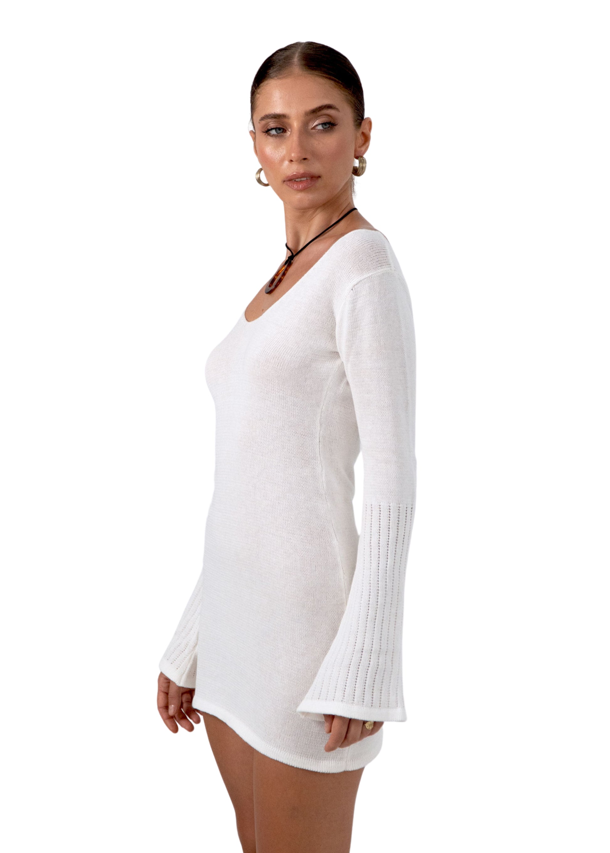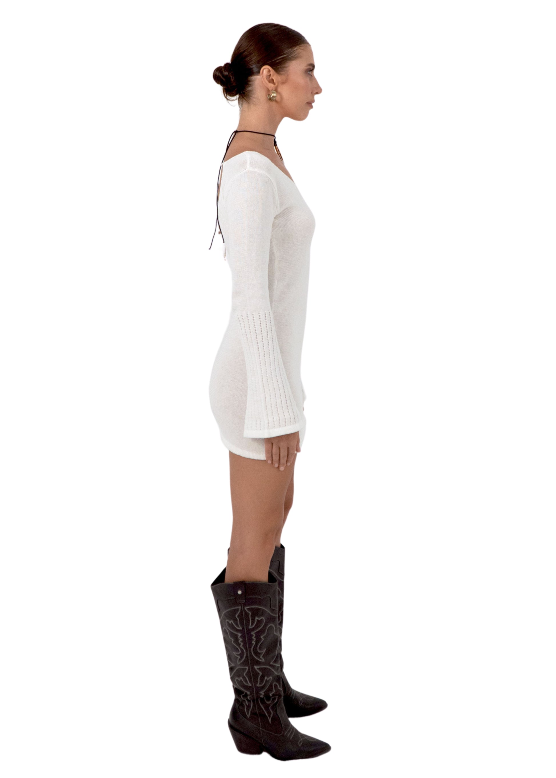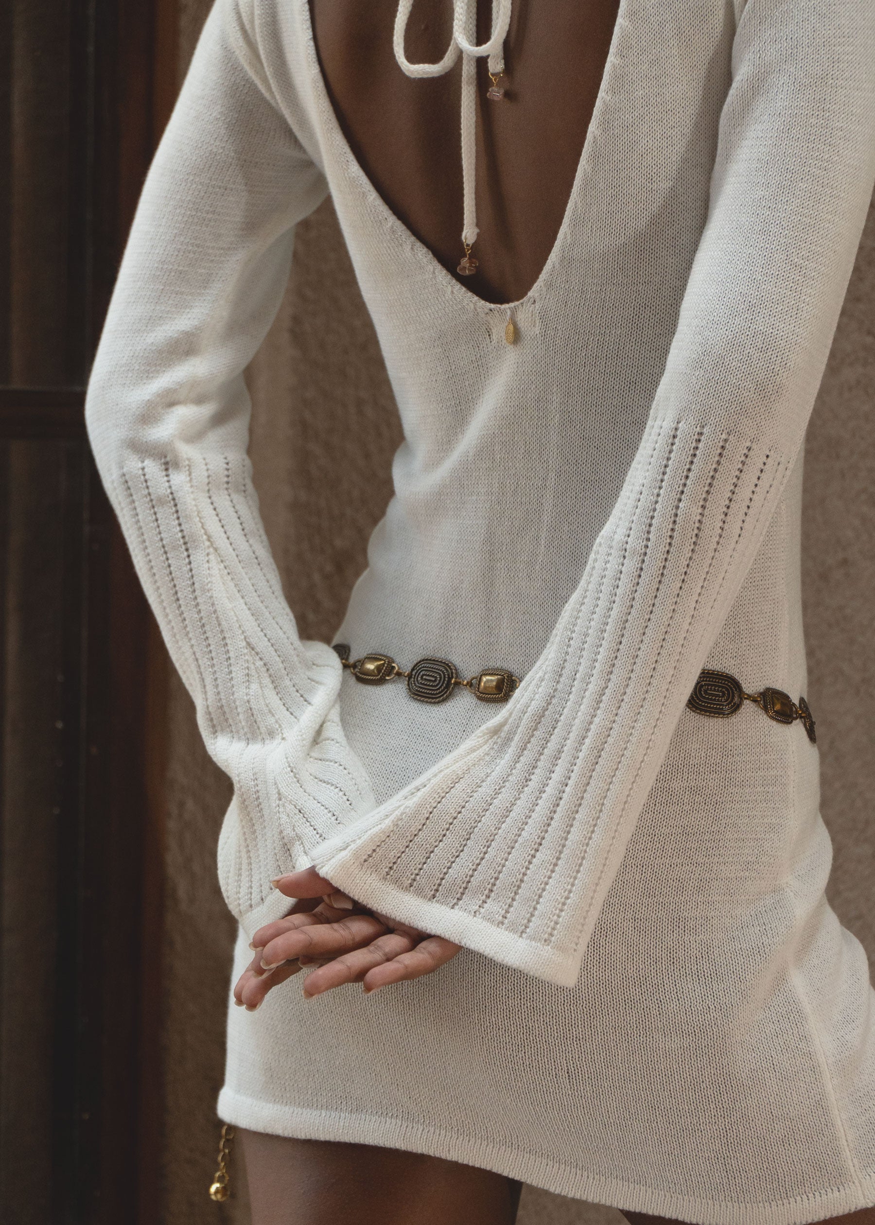El 'Lua Mini white' es una prenda versátil y un clásico del verano. Combina una mezcla de tejidos que fusiona jersey y rib, resultado de un proceso de confección detallado
